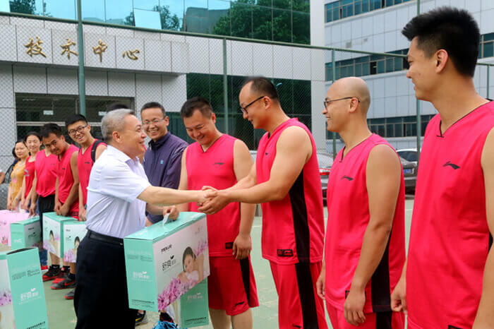 6月3日中午,南京新沐科技有限公司2016年职工篮球比赛上演巅峰对决。经过激烈比拼,职能销售队以56:22战胜东方科技,分别获冠亚军;瑞创达以37:21战胜变压器队获得季军,首次组队参赛的变压器队获得第四名。集团公司工会主席、党委副书记李成山为获奖团队颁奖。